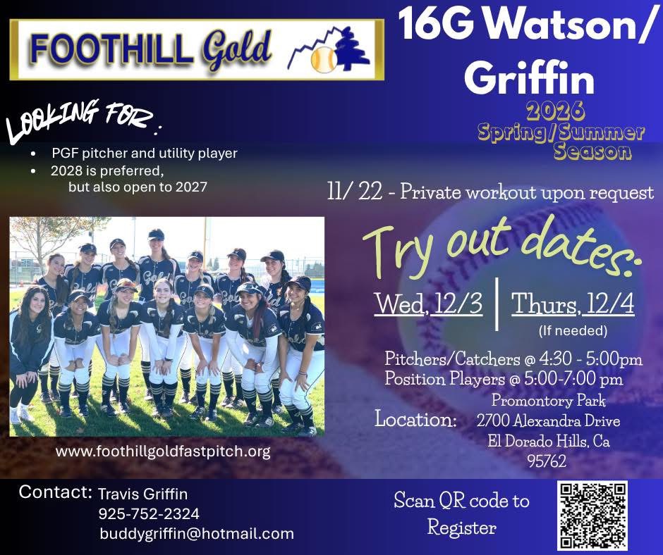 All players must fill out the waiver to attend - Click Here>Foothill Gold 16G Tryout Waiver